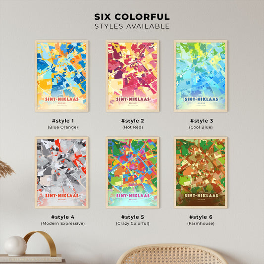 Colorful SINT-NIKLAAS BELGIUM Fine Art Map Poster | Customizable