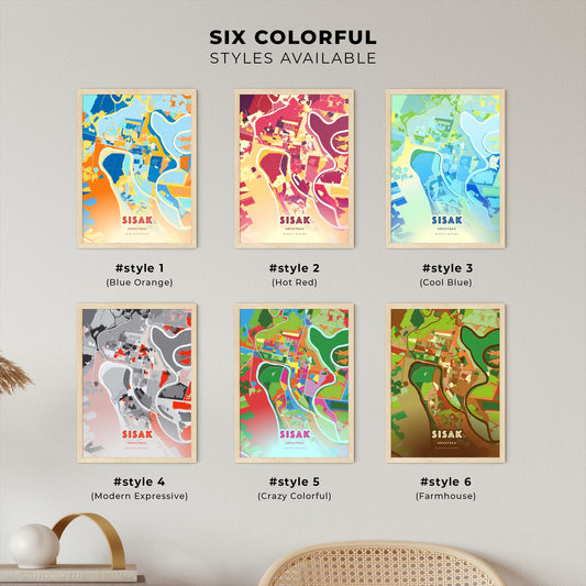 Colorful SISAK CROATIA Fine Art Map Poster | Customizable