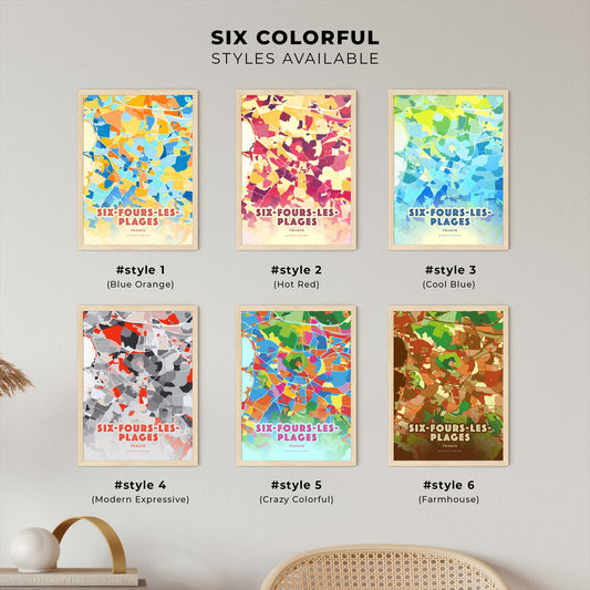 Colorful SIX-FOURS-LES-PLAGES FRANCE Fine Art Map Poster | Customizable