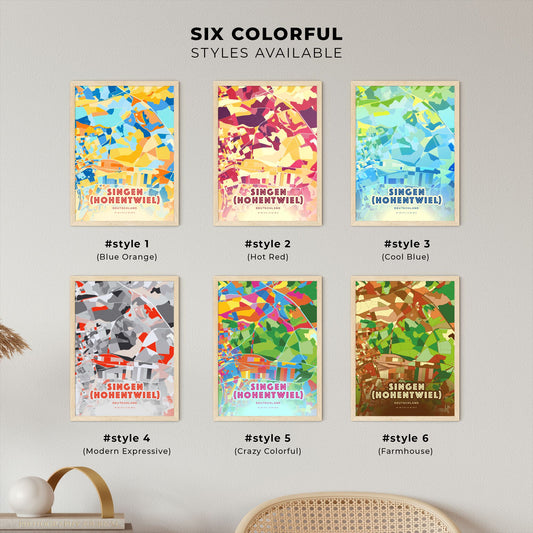 Colorful SINGEN (HOHENTWIEL) GERMANY Fine Art Map Poster | Customizable
