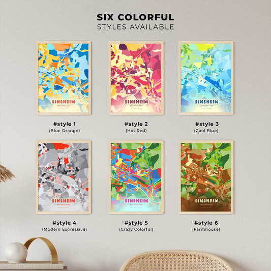 Colorful SINSHEIM GERMANY Fine Art Map Poster | Customizable