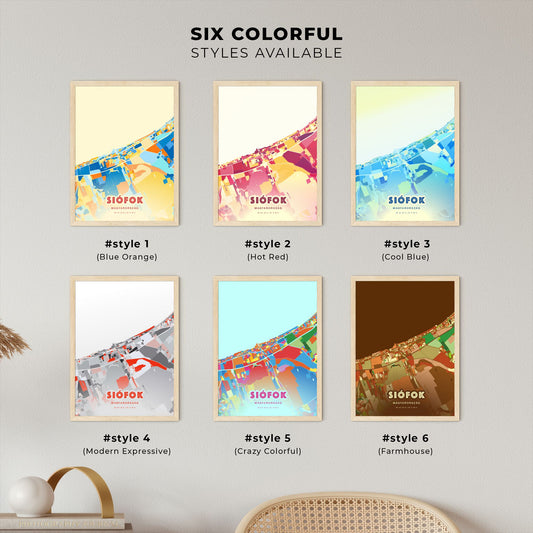 Colorful SIÓFOK HUNGARY Fine Art Map Poster | Customizable
