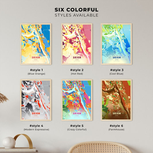 Colorful SKIEN NORWAY Fine Art Map Poster | Customizable