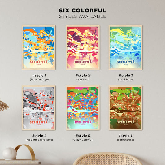 Colorful SKELLEFTEÅ SWEDEN Fine Art Map Poster | Customizable