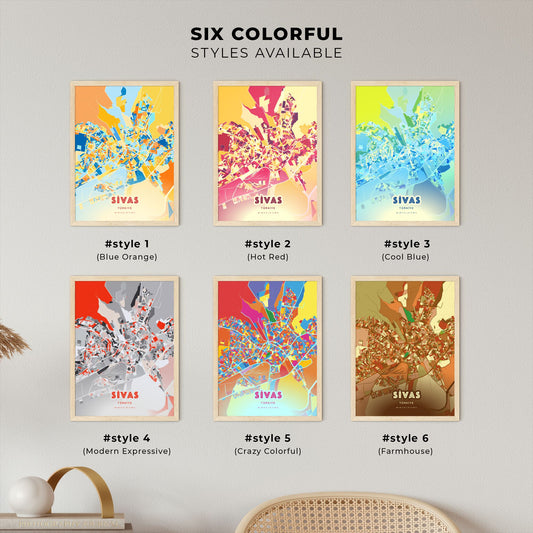 Colorful SIVAS TURKEY Fine Art Map Poster | Customizable