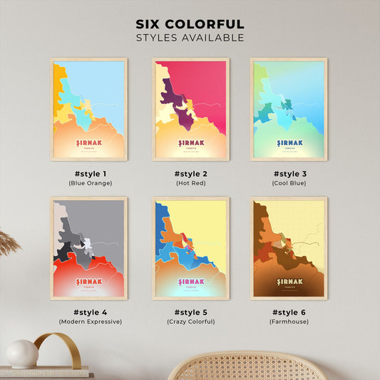 Colorful ŞIRNAK TURKEY Fine Art Map Poster | Customizable