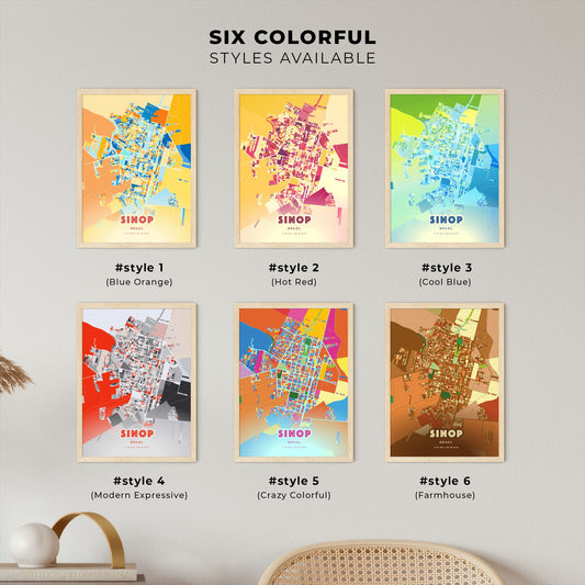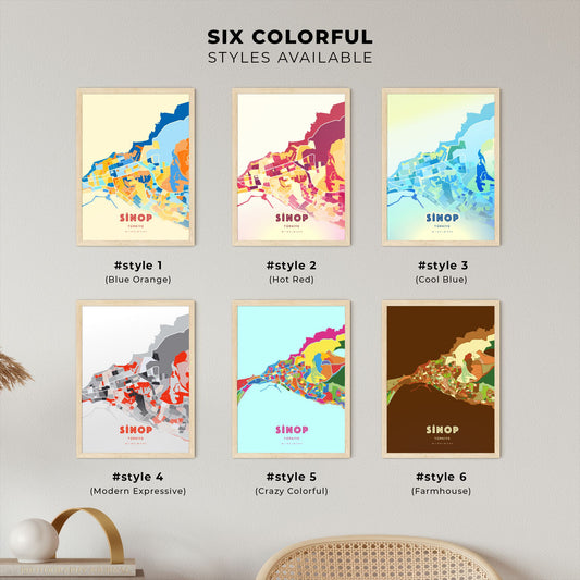 Colorful SINOP TURKEY Fine Art Map Poster | Customizable
