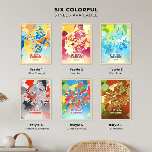 Colorful SITTINGBOURNE ENGLAND Fine Art Map Poster | Customizable