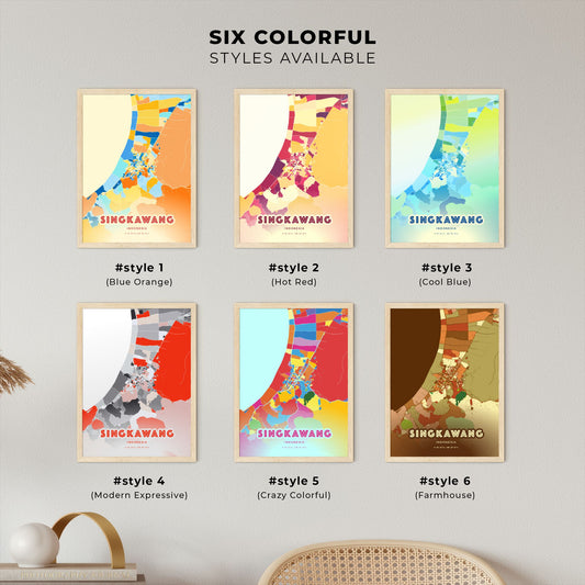 Colorful SINGKAWANG INDONESIA Fine Art Map Poster | Customizable