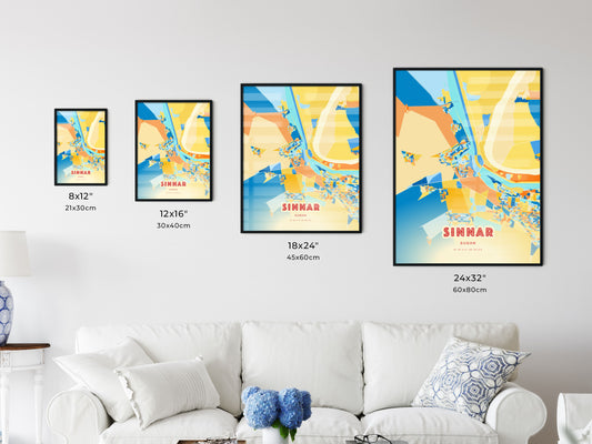 Colorful SINNAR SUDAN Fine Art Map Poster | Customizable