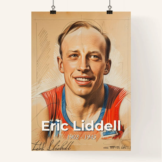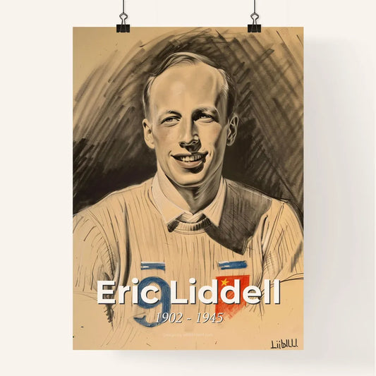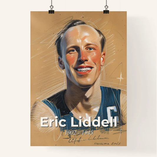 Eric Liddell: Inspiring Olympian & Missionary - Stunning Contemporary Portrait Print on Elegant Beige, Perfect for Home Decor
