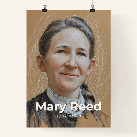 Elegant Portrait of Mary Reed: Celebrating a Visionary American Missionary with Graceful Lines on Chic Beige Background