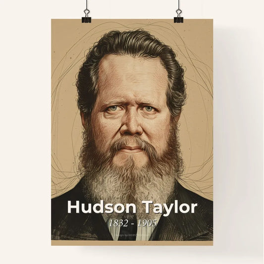 Elegant Portrait of Hudson Taylor: Contemporary Art Print Celebrating the Iconic Missionary's Legacy with Dynamic Lines & Subtle Hues