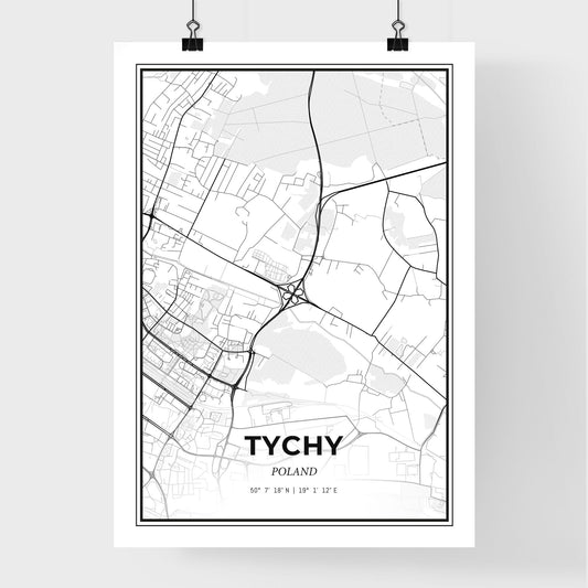 Tychy Poland - Scandinavian Style City Map for Modern Home Decor