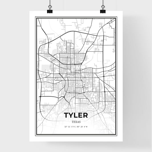 Tyler Texas - Scandinavian Style City Map for Modern Home Decor