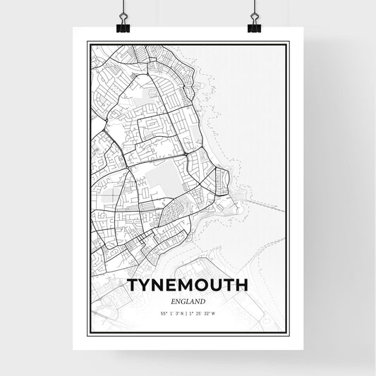 Tynemouth England - Scandinavian Style City Map for Modern Home Decor