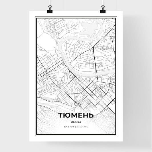 Tyumen Russia - Scandinavian Style City Map for Modern Home Decor