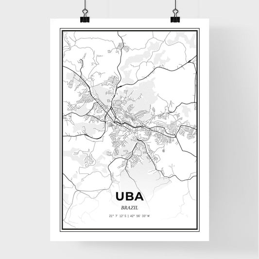 Uba Brazil - Scandinavian Style City Map for Modern Home Decor