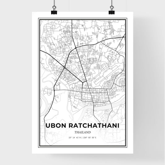 Ubon Ratchathani Thailand - Scandinavian Style City Map for Modern Home Decor