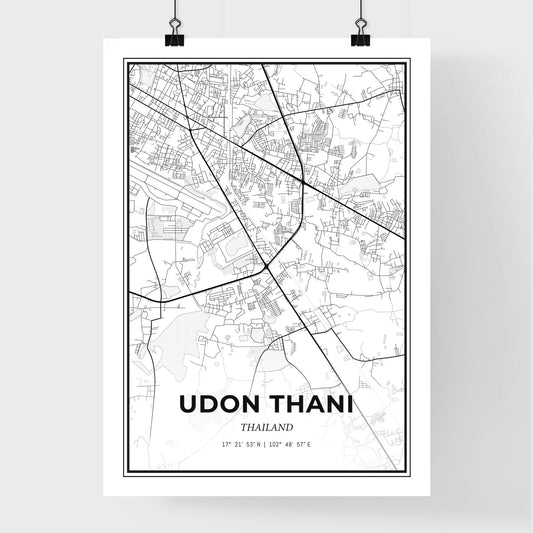 Udon Thani Thailand - Scandinavian Style City Map for Modern Home Decor