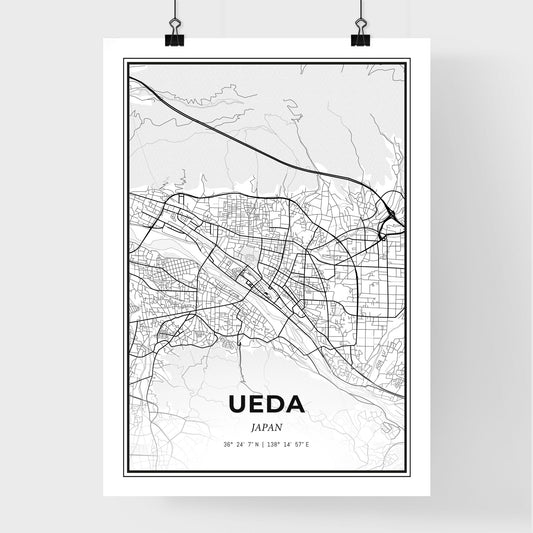 Ueda Japan - Scandinavian Style City Map for Modern Home Decor