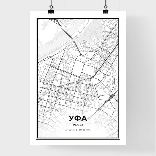 Ufa Russia - Scandinavian Style City Map for Modern Home Decor