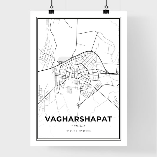 Vagharshapat Armenia - Scandinavian Style City Map for Modern Home Decor