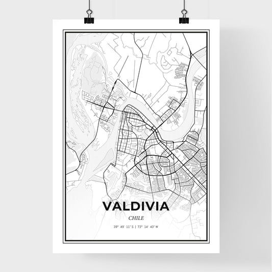 Valdivia Chile - Scandinavian Style City Map for Modern Home Decor