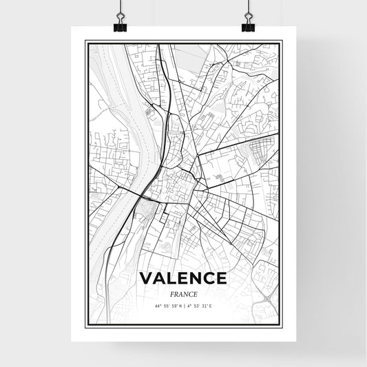 Valence France - Scandinavian Style City Map for Modern Home Decor