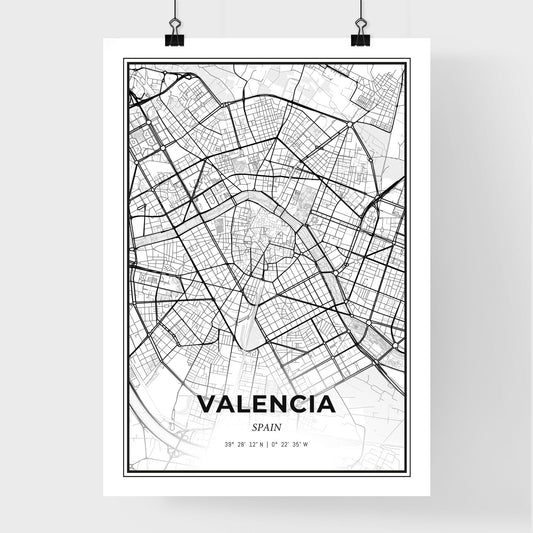 Valencia Spain - Scandinavian Style City Map for Modern Home Decor