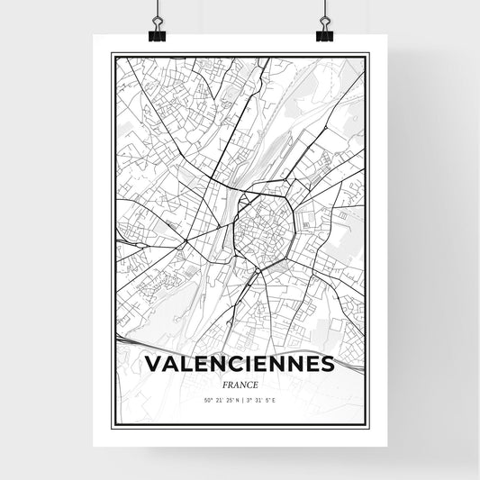 Valenciennes France - Scandinavian Style City Map for Modern Home Decor