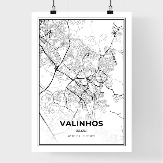 Valinhos Brazil - Scandinavian Style City Map for Modern Home Decor