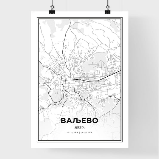 Valjevo Serbia - Scandinavian Style City Map for Modern Home Decor