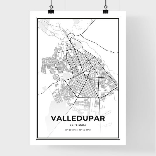 Valledupar Colombia - Scandinavian Style City Map for Modern Home Decor