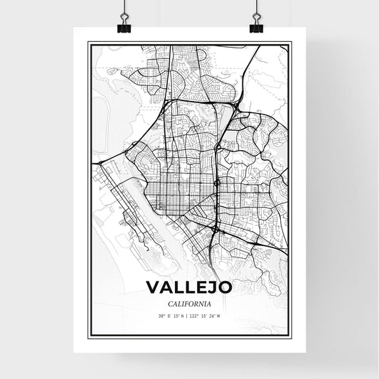 Vallejo California - Scandinavian Style City Map for Modern Home Decor