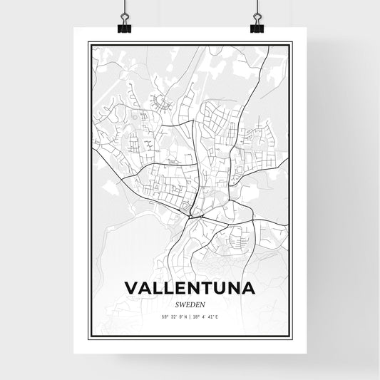 Vallentuna Sweden - Scandinavian Style City Map for Modern Home Decor