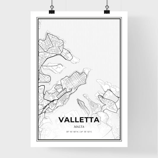 Valletta Malta - Scandinavian Style City Map for Modern Home Decor