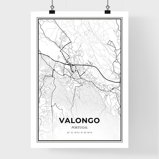 Valongo Portugal - Scandinavian Style City Map for Modern Home Decor