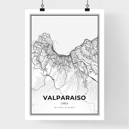Valparaiso Chile - Scandinavian Style City Map for Modern Home Decor