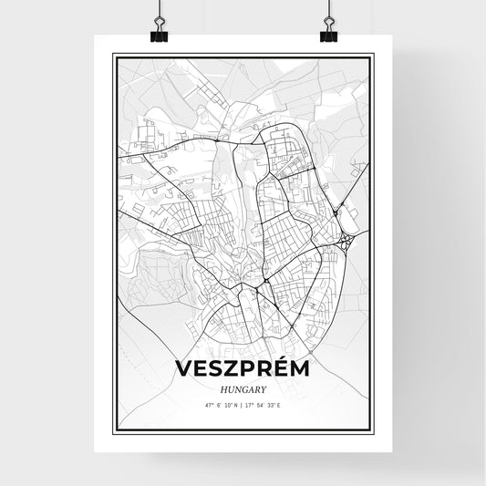 Veszprém Hungary - Scandinavian Style City Map for Modern Home Decor