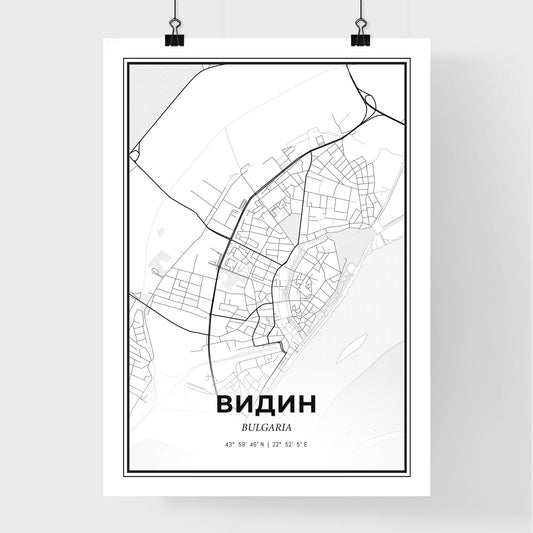 Vidin Bulgaria - Scandinavian Style City Map for Modern Home Decor