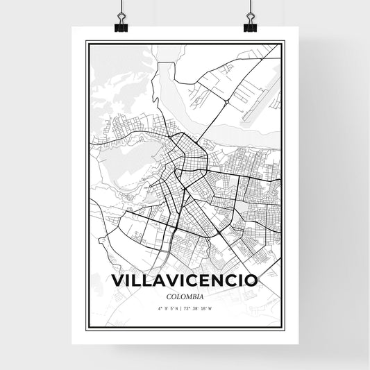 Villavicencio Colombia - Scandinavian Style City Map for Modern Home Decor