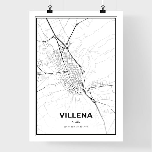 Villena Spain - Scandinavian Style City Map for Modern Home Decor