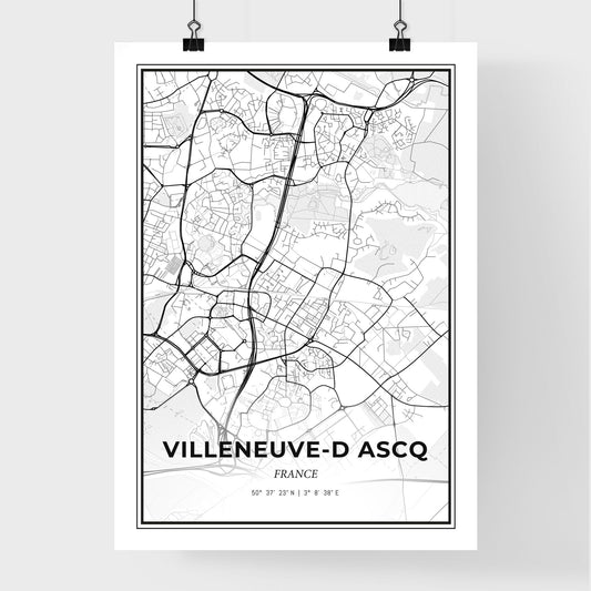 Villeneuve-d Ascq France - Scandinavian Style City Map for Modern Home Decor