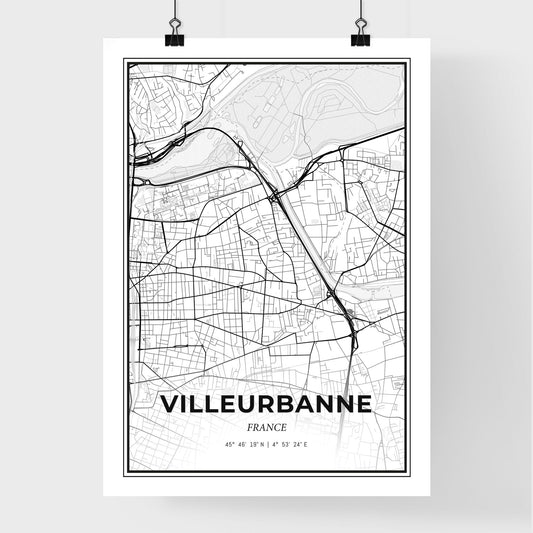 Villeurbanne France - Scandinavian Style City Map for Modern Home Decor