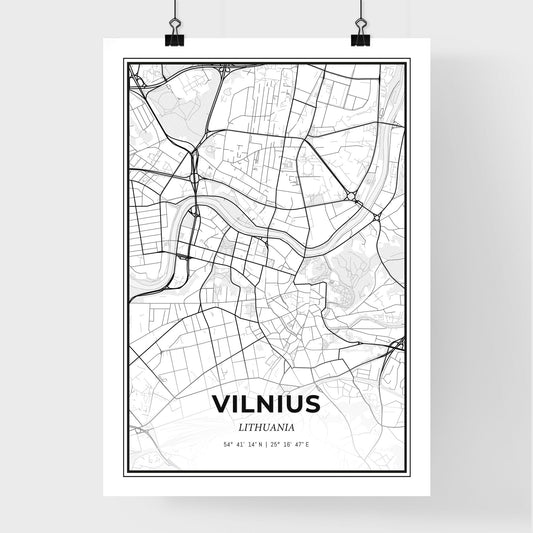 Vilnius Lithuania - Scandinavian Style City Map for Modern Home Decor