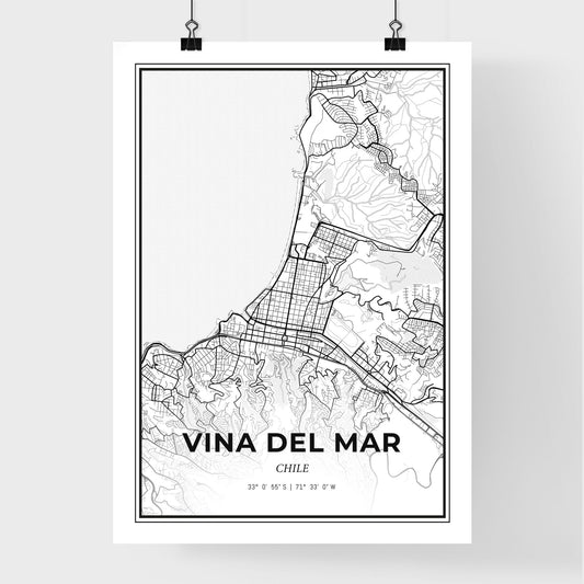 Vina del Mar Chile - Scandinavian Style City Map for Modern Home Decor