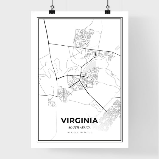 Virginia South Africa - Scandinavian Style City Map for Modern Home Decor