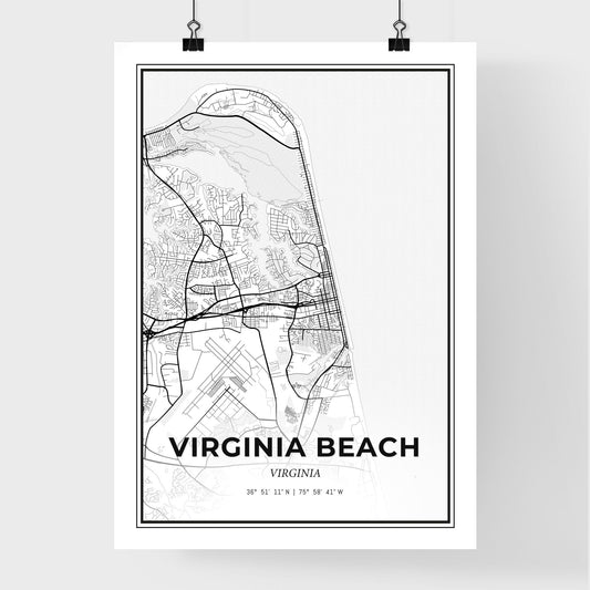 Virginia Beach Virginia - Scandinavian Style City Map for Modern Home Decor