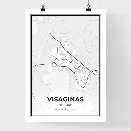 Visaginas Lithuania - Scandinavian Style City Map for Modern Home Decor